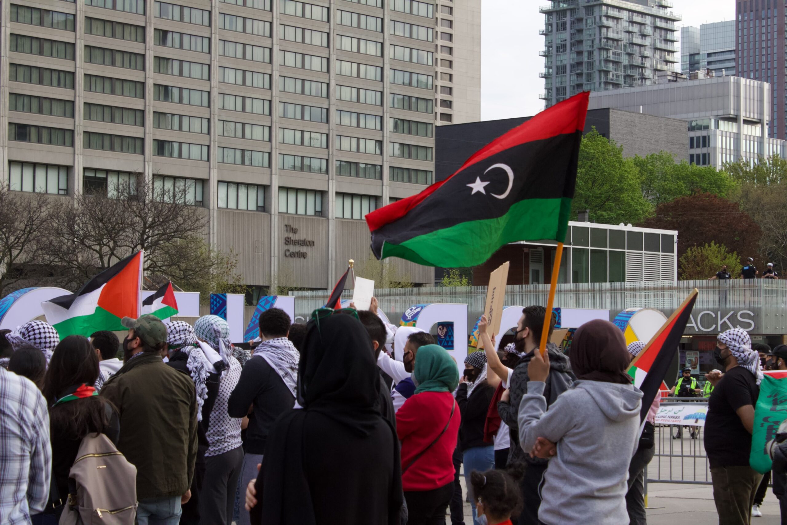 1EEEE68D-545D-4492-A6D8-40DC7EC9A52A Palestinian Supporters. Israeli Supporters. Courtesy Nicole Botelho Simao/ Sheridan Sun