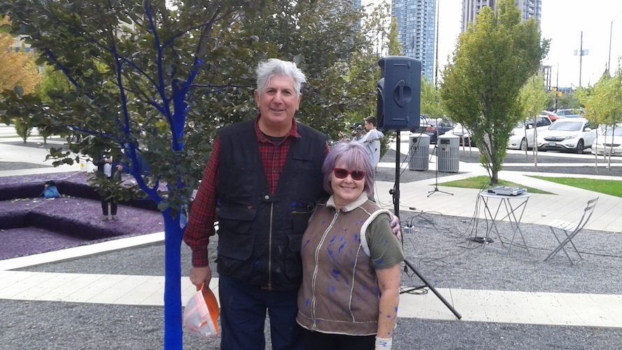 Konstantin and Adele Dimopoulous pose next to blue tree. (TheSheridanSun/BrendenZerihun)