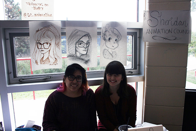 clubsfair-beaulieu-11 Animation students, Nicole Colada and Rebecca DeGirolame hold down the Sheridan Animation Council booth.