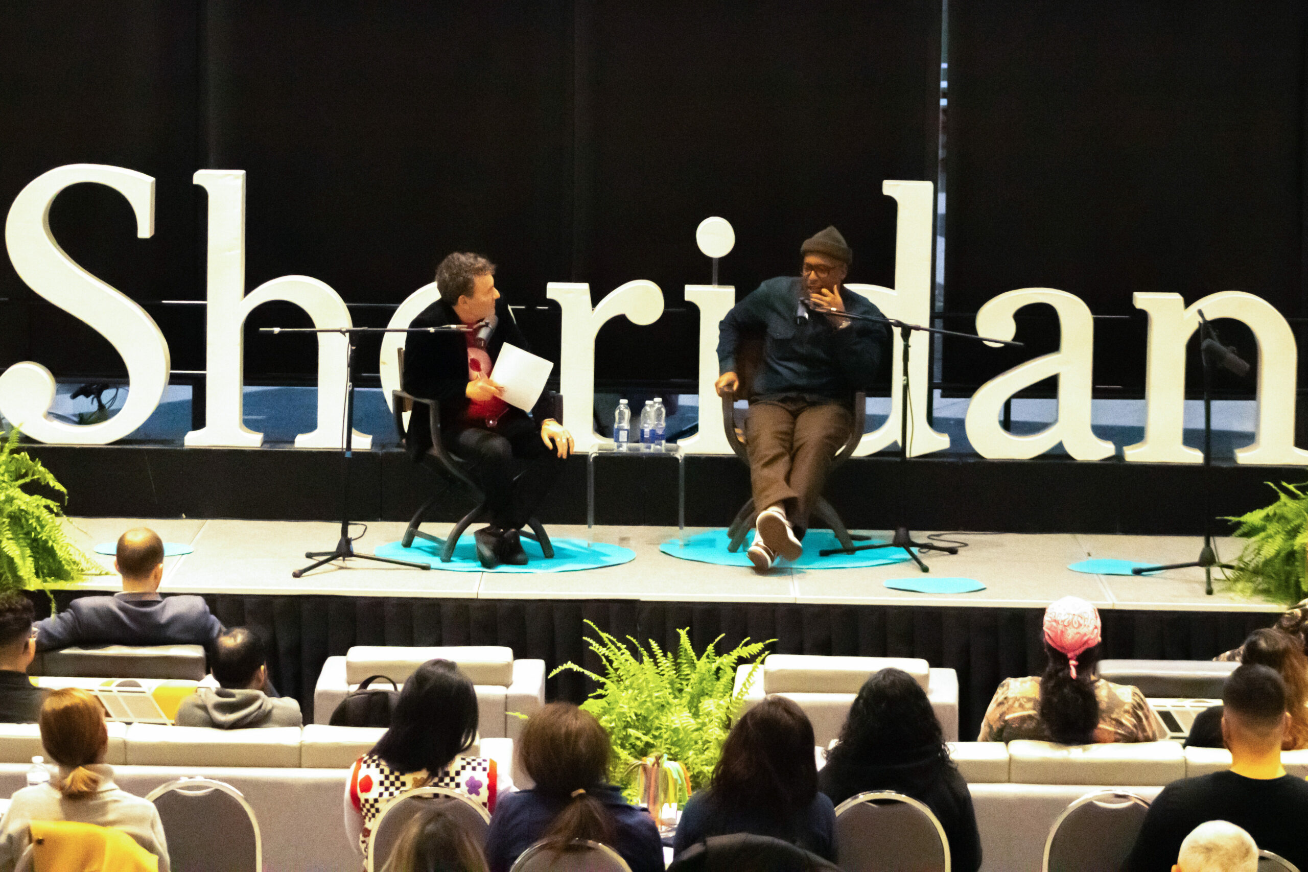 Tony Chapman (left) with special guest Jesse Jones (right) live recording an episode of the Chatter That Matters podcast at Sheridan’s HMC campus on November 23rd 2023.