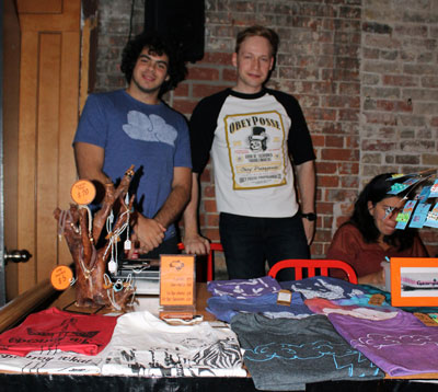 Vasilis Glezakos and Chris Tsoutsoulas stand behind their table at the Indie Arts Market. Their product is t-shirts, designed and created by Glezakos under the name, Pass the Soap. “He’s the art master, and I’m more the business side,” said Tsoutsoulas, referring to Glezakos. The ideas for the shirts usually come to Glezakos in dreams. The duo has been setting up their merchandise tables at hip-hop and breakdancing event, as Glezakos is a participating member of that community. This is the first time they’ve attended the market.